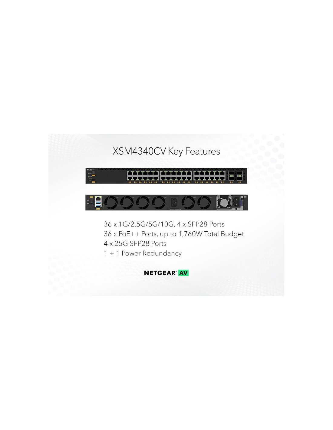 Netgear XSM4340CV-100NES - M4350-36X4V switch gestionable 24 puertos PoE++ (1GB,2.5GB,5GB,10GB) más 8 puertos SFP+ más 8 puertos