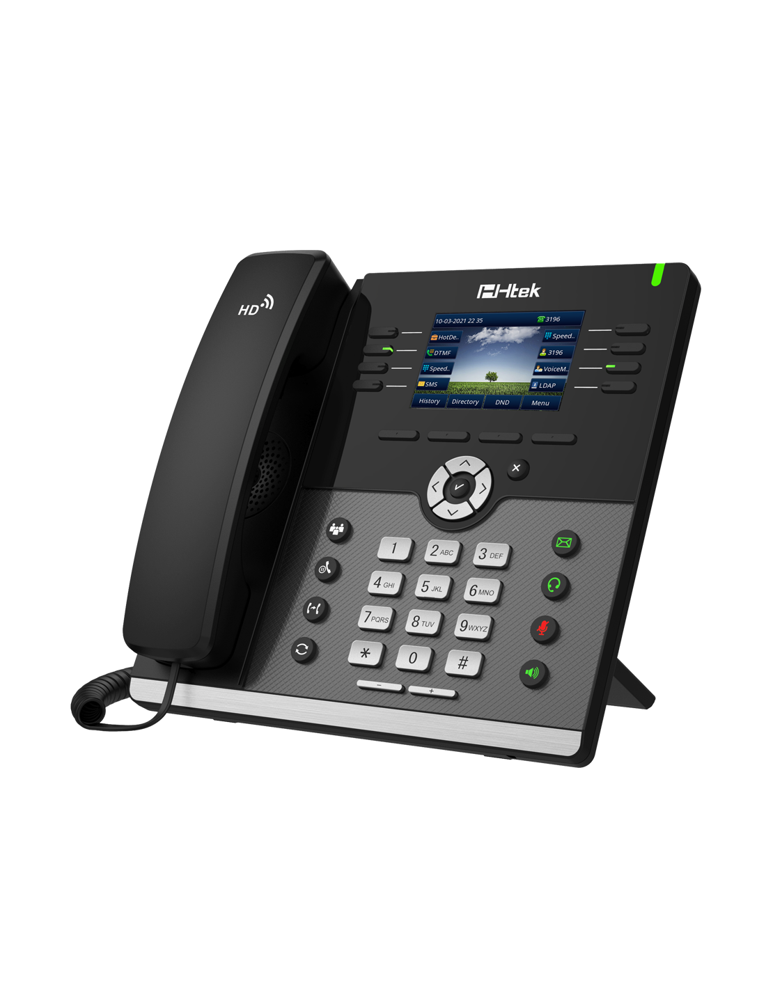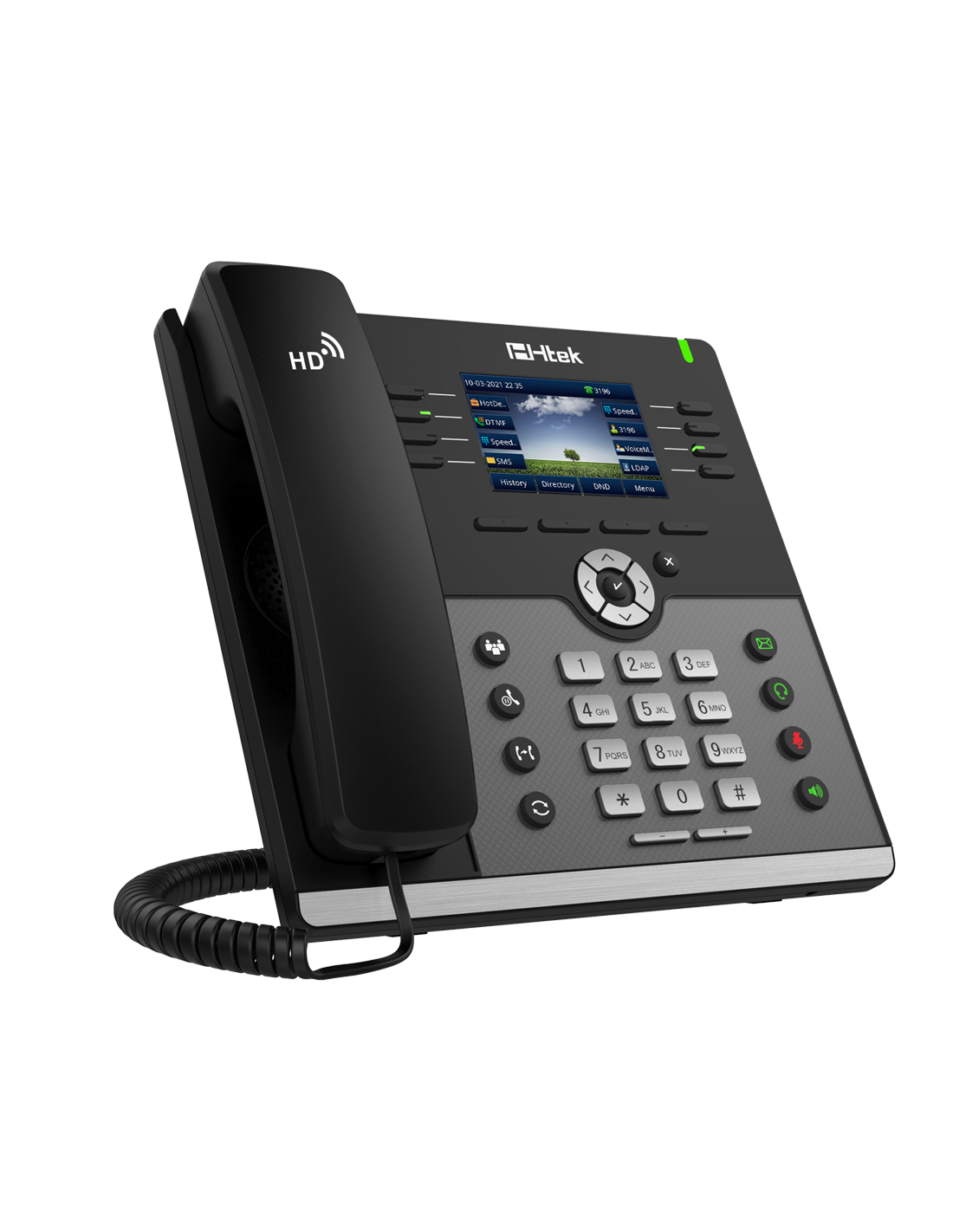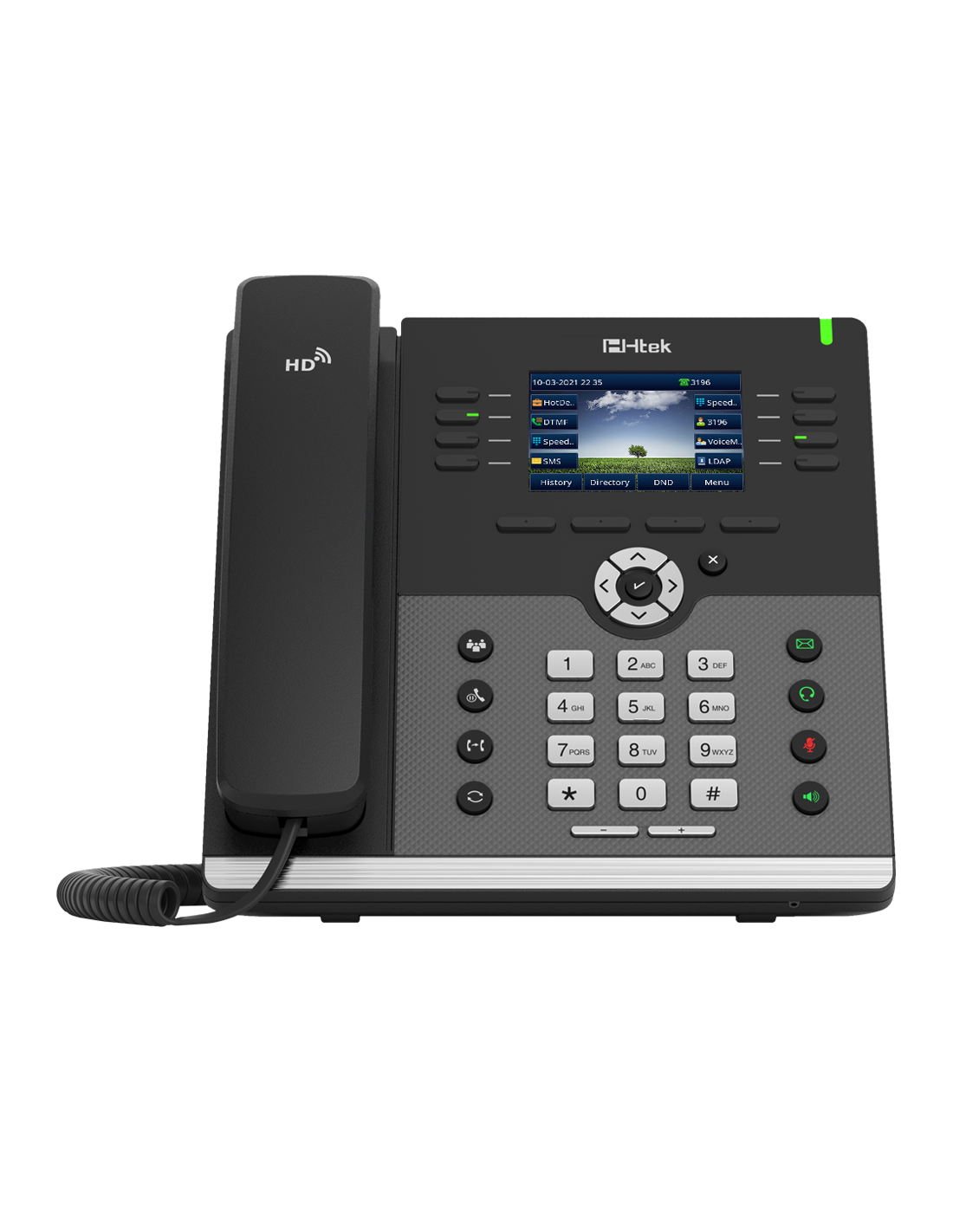 Pantalla a color de 3,5" y 480 x 320 píxeles con retroiluminaciónColor de profundidad de 24 bitsLED para indicación de llamada y mensaje en esperaIluminado en dos colores (rojo o verde)LED para información del estado de la líneaFondo de pantalla, selección de idioma nacionalInterfaz de usuario intuitiva con iconos y teclas programables.Identificador de llamadas con nombre, número y foto