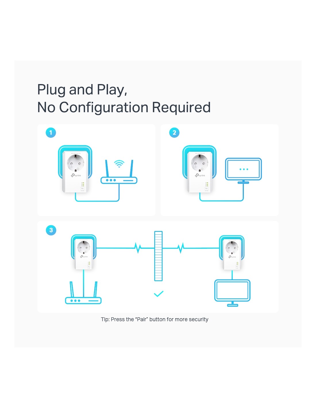 - Plug and Play - permite la configuración de tu red powerline en minutos, para que puedas disfrutar de conexiones rápidas, cableadas e inalámbricas de inmediato